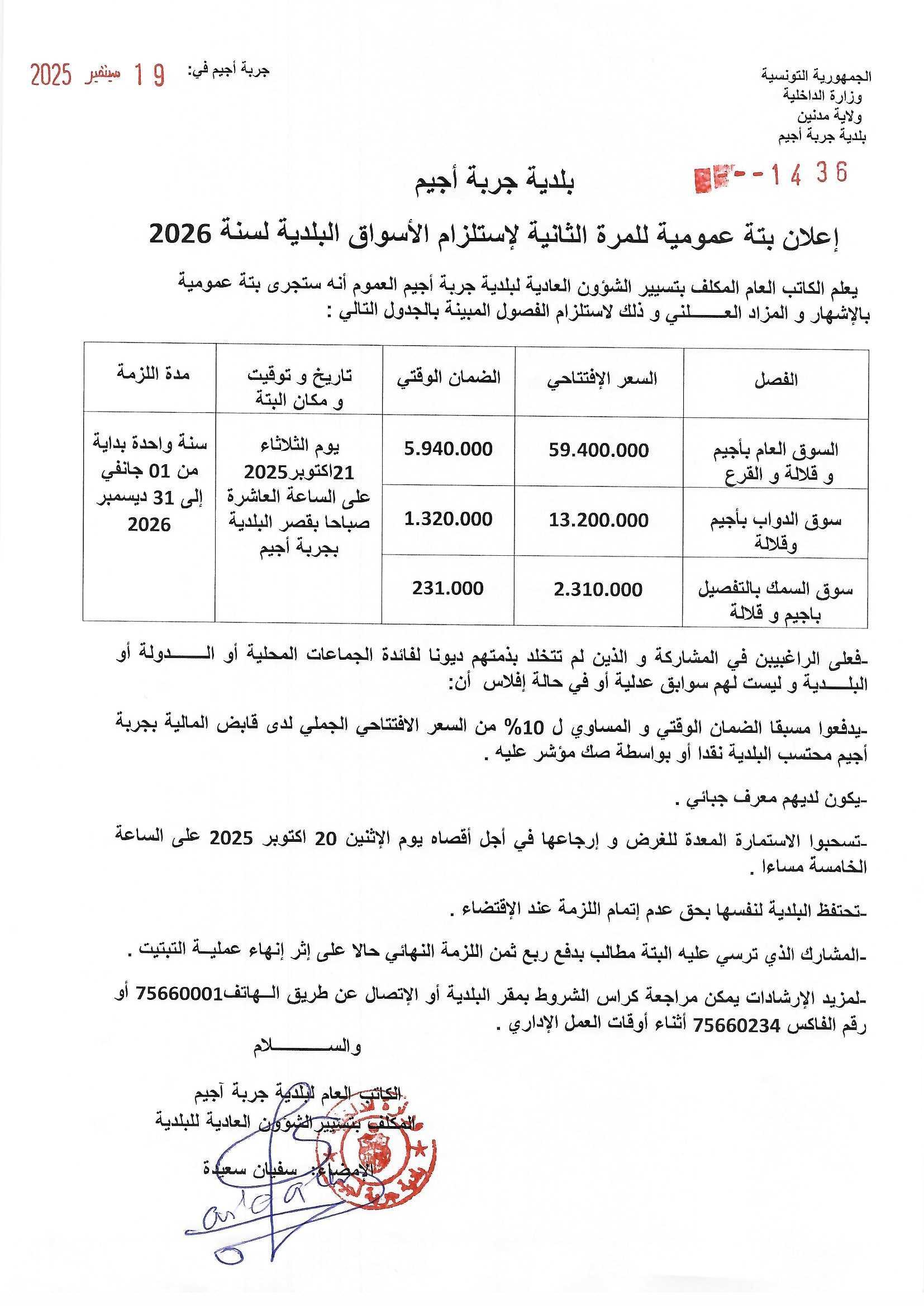 فضاء خاص بمتساكني مدينة اجيم لتقديم تشكياتهم وعرائضهم ( عطب في التنوير عمومي،  مخالفة في البناء، تكسير في طرقات..)